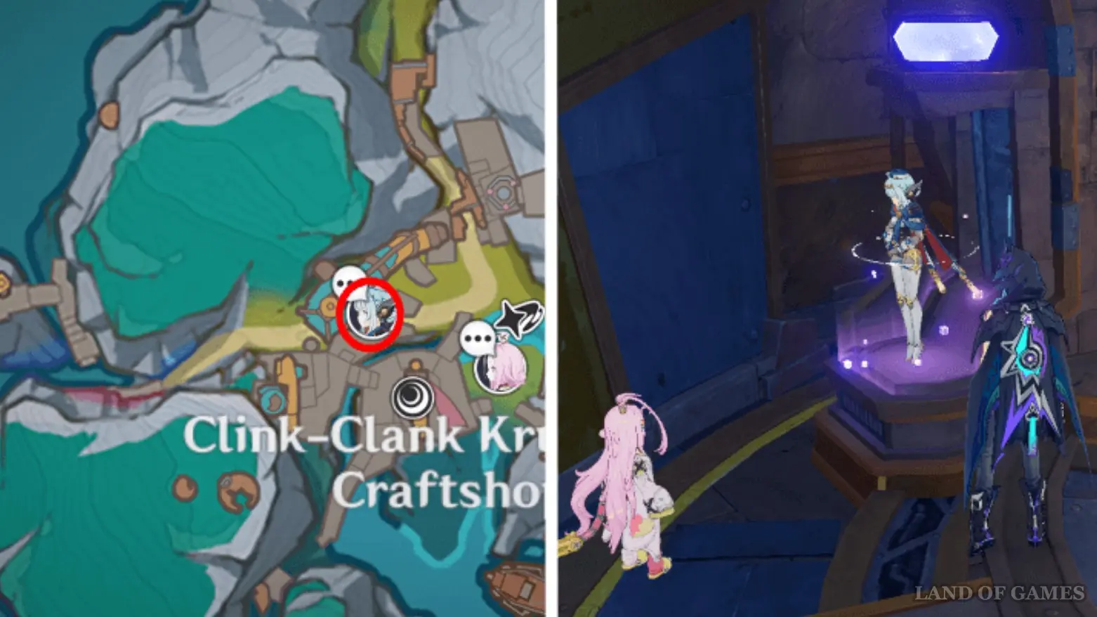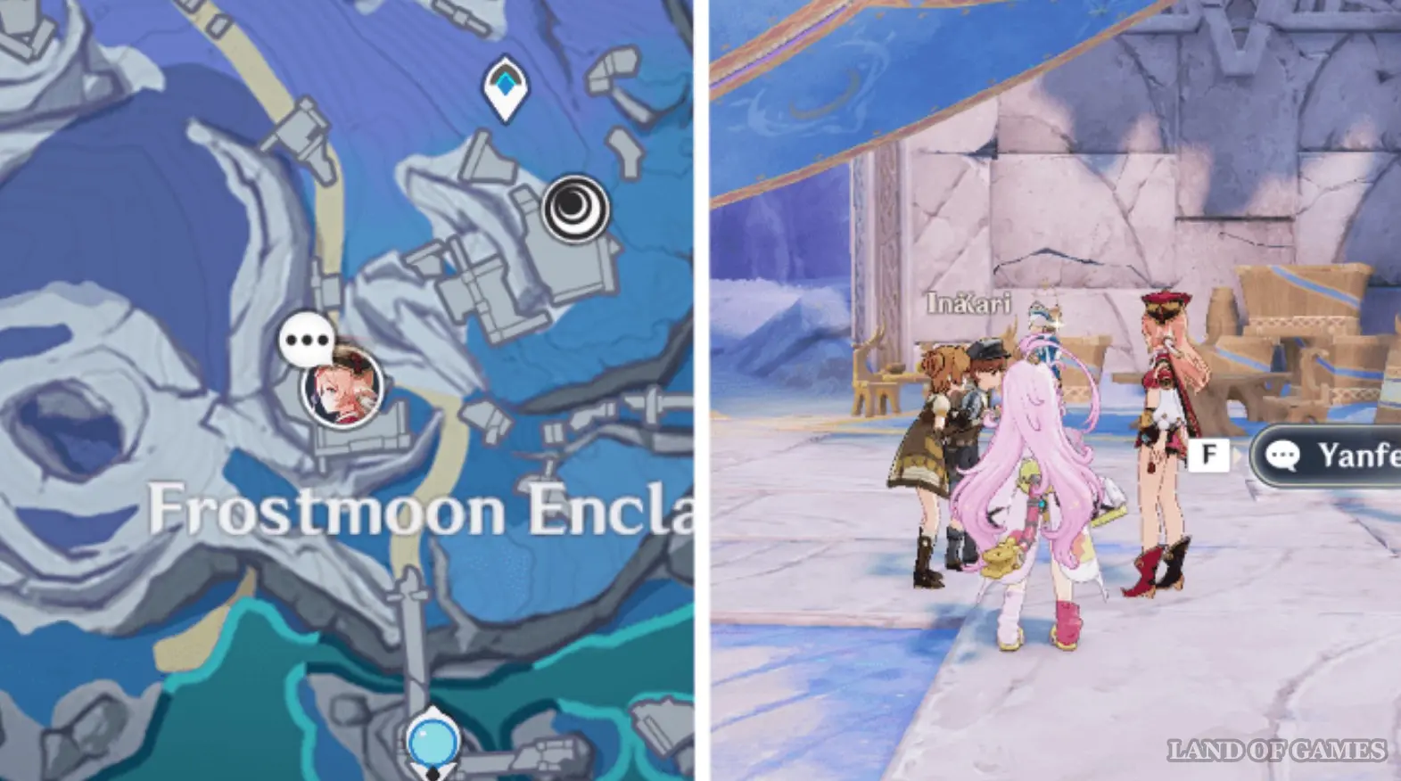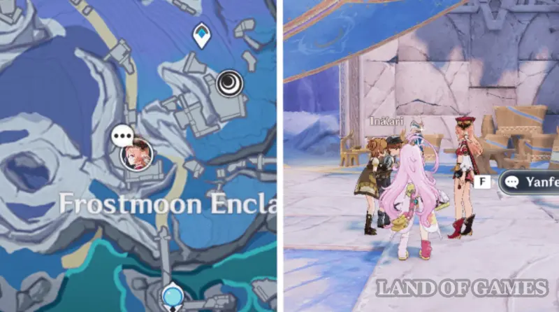 Вы можете найти Лауму неподалеку от места встречи в Анклаве Морозной Луны (нужно обязательно открыть его). Она будет снова беседовать с хорьком-барахольщиком, который начал доставлять проблем другим людям из-за его жажды искать сокровища.