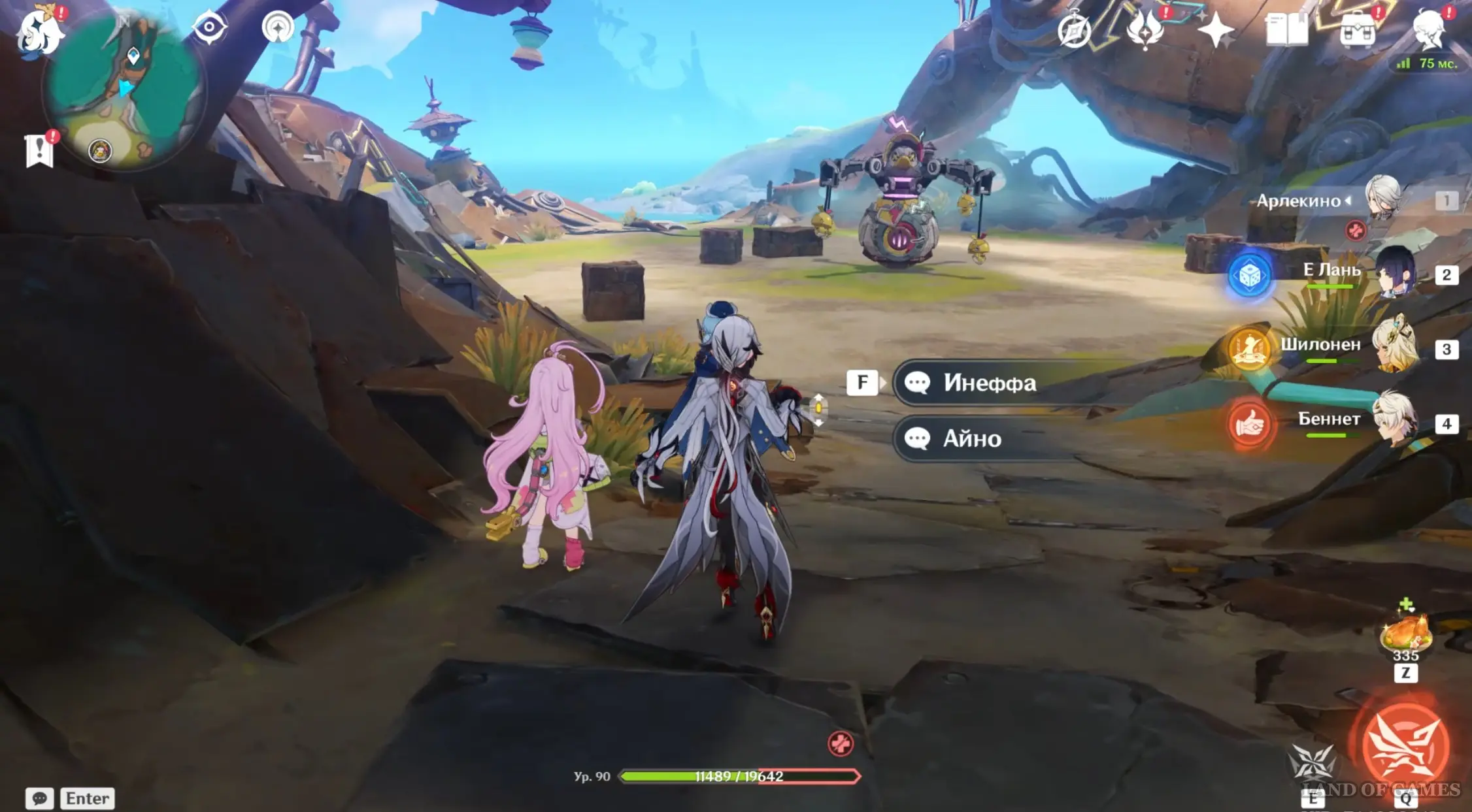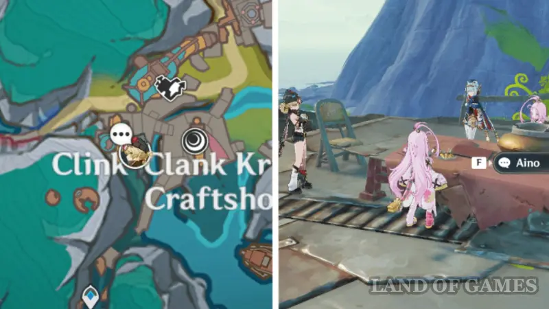 Скорее всего, для появления этого события нужно сначала пройти задание мира «Сортировщик проблем». Затем переместитесь к месту встречи возле мастерской и послушайте забавный диалог между Айно и Чард Ломбро.