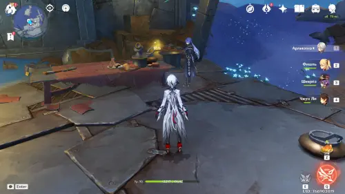 Его можно повстречать неподалеку от торговой лавки Цай Жо в Нашгороде. Во время разговора с ним вы узнаете, что картограф приехал в Нод-Край для передачи сообщения от Джинн Варке. Плюс, он привез с собой немало гостинцев как для нас, так и для Варки. После разговора с ним вы получите Яблочный напиток.