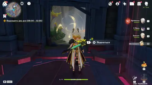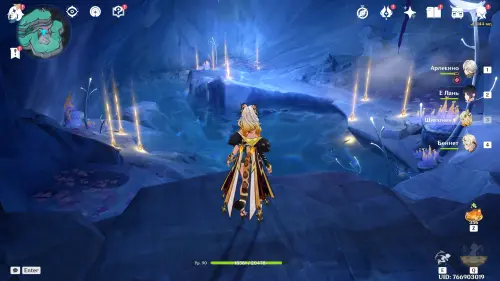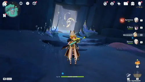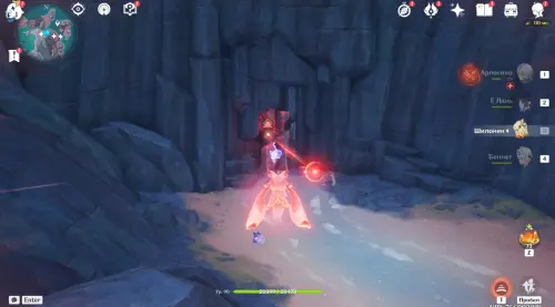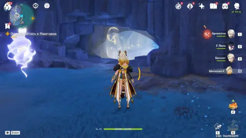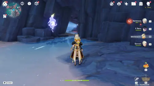 Пройдите внутрь и бегите вглубь пещеры, пока не заметите с левой стороны барьер. Снимите щит и войдите в тайник. Здесь вы обнаружите Пыль просветления, а также 5-звездочные части сетов артефактов Серенада шелковой луны и Ночь открытия неба.