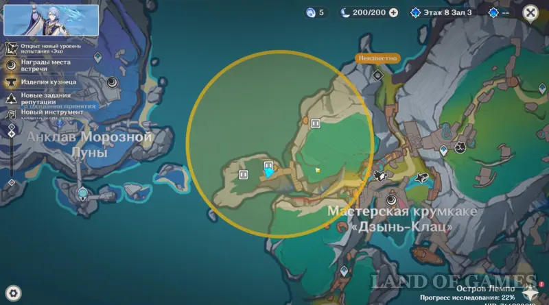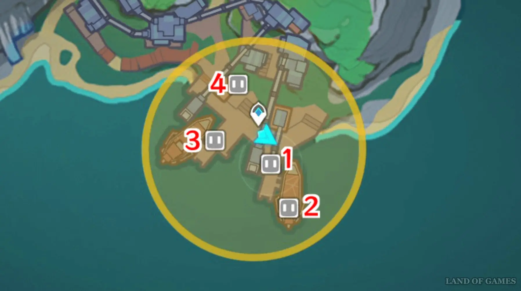 Выберите второе испытание и переместитесь в западную часть острова Лемпо, а затем тут же примитесь за поиски 3 сломанных роботов. Их примерное расположение показано на карте ниже. Далее подробно укажем, где их следует искать.