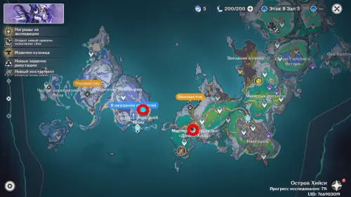 - Исследовать остров Хийси. Речь идет об активации телепортов, нахождении сундуков, сборе лунокулов и так далее. За каждый определенный процент прогресса в изучении указанной области вы будете выполнять одно из условий для увеличения уровня Места встречи.
