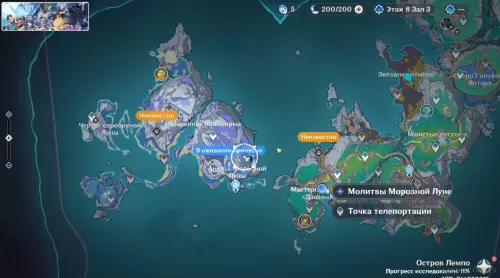 - Исследовать остров Лемпо. Речь идет об активации телепортов, нахождении сундуков, сборе лунокулов и так далее. За каждый определенный процент прогресса в изучении указанной области вы будете выполнять одно из условий для увеличения уровня Места встречи.