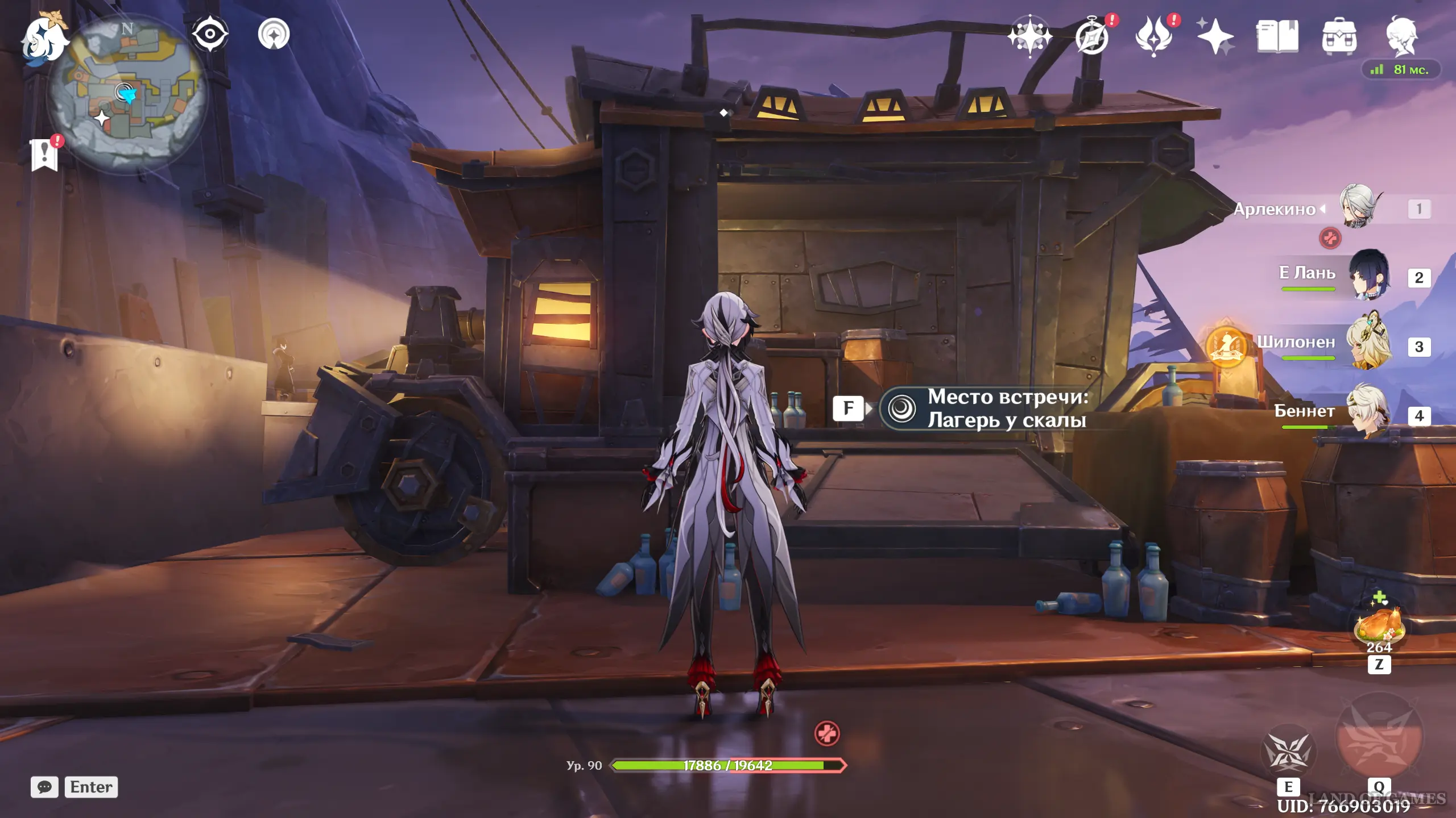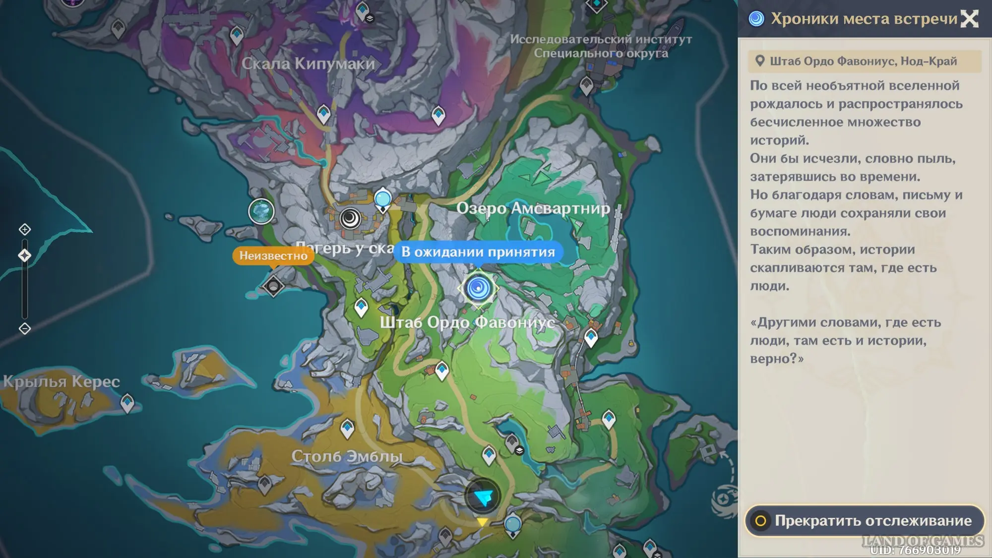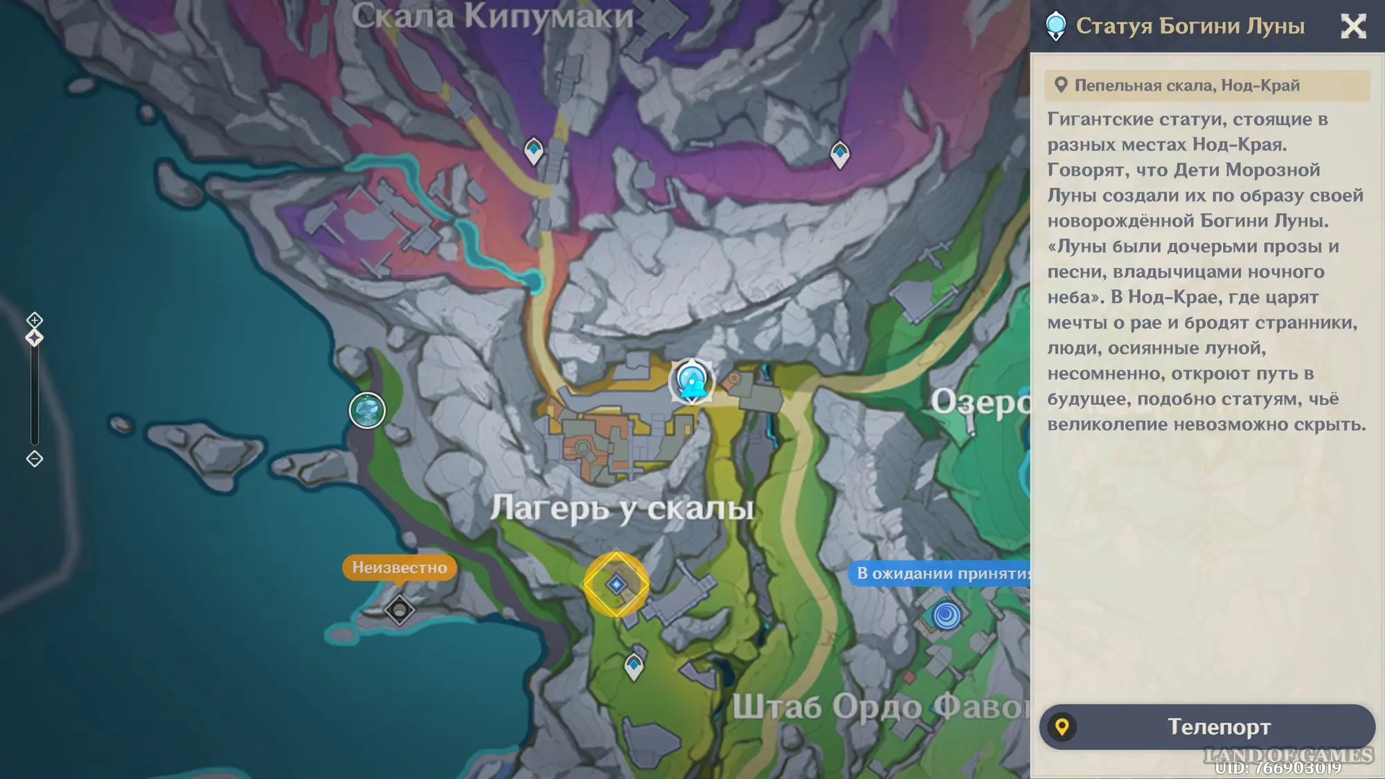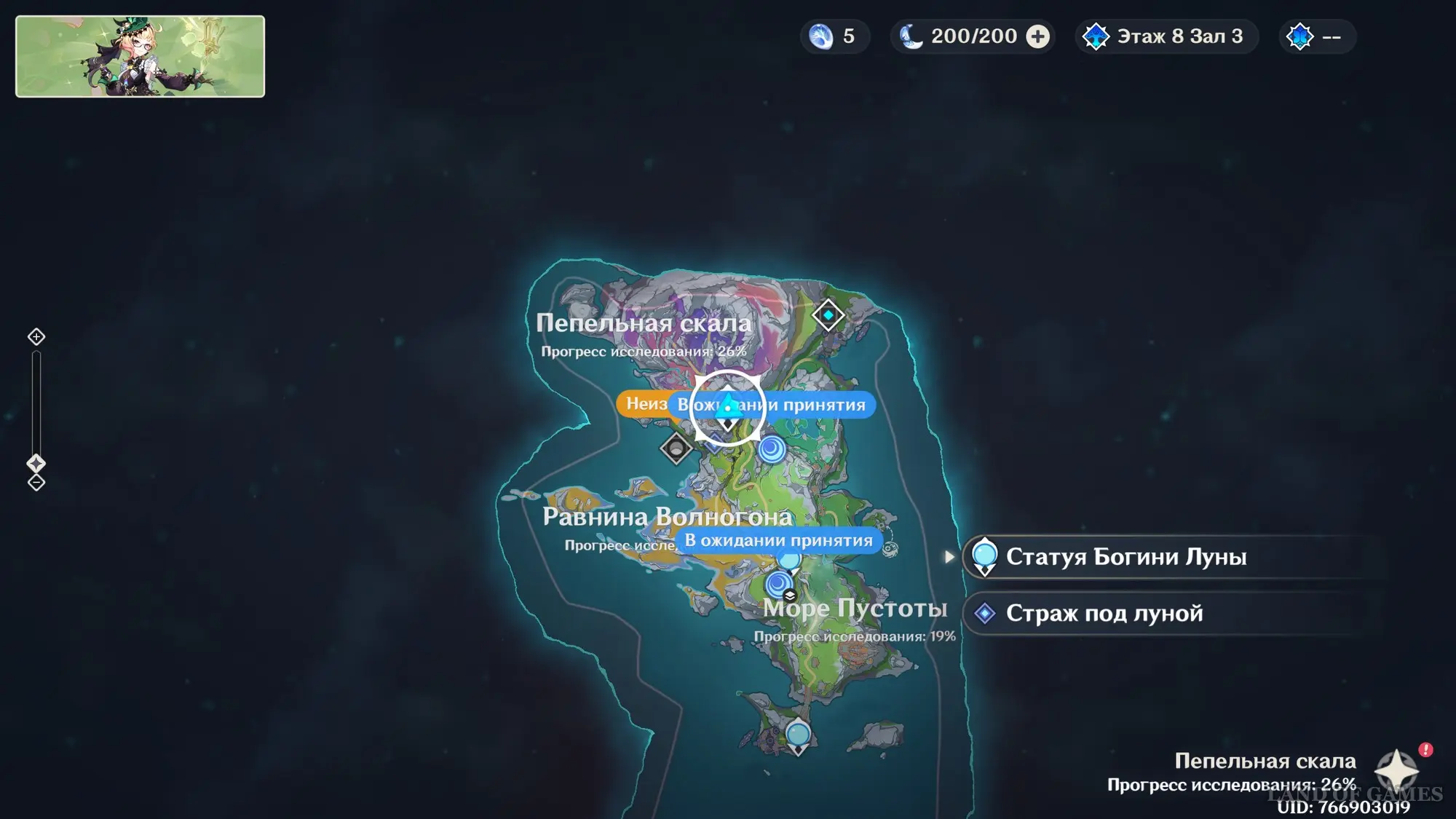 - Исследовать Пепельную скалу. Речь идет об активации телепортов, нахождении сундуков, сборе лунокулов и так далее. За каждый определенный процент прогресса в изучении указанной области вы будете выполнять одно из условий для увеличения уровня Места встречи.