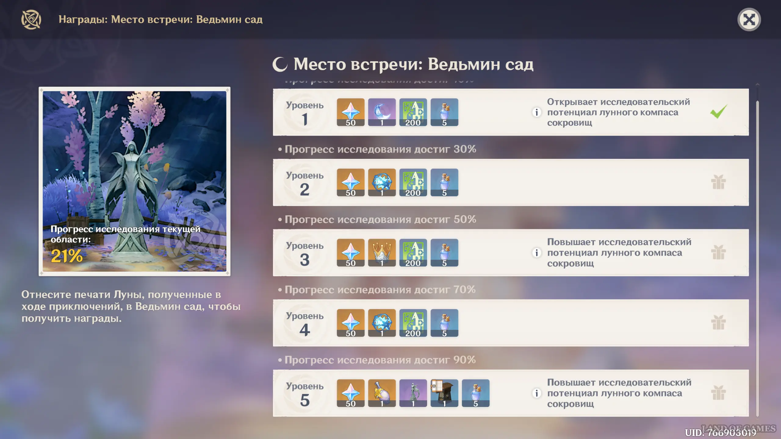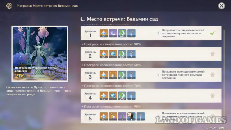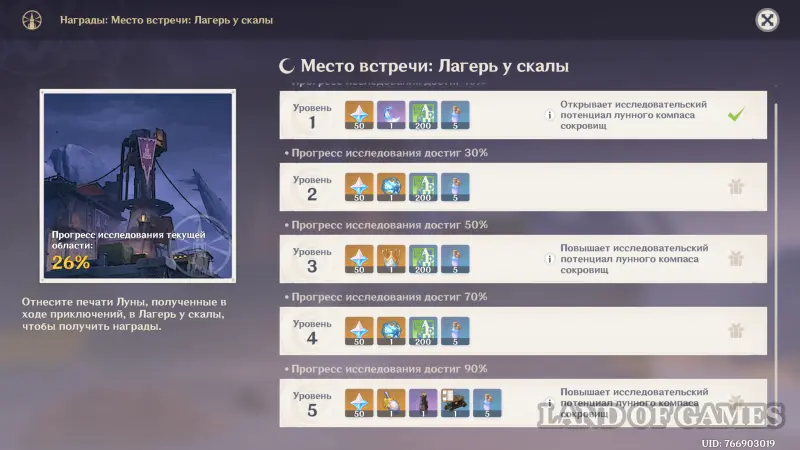 В награду за совместную постройку Мест встречи вы не только будете получать камни истока, предметы декора и ключи от усыпальниц глубин пограничья, но также откроете Лунный компас сокровищ и сможете улучшать его уровень исследовательского потенциала для конкретной области. В этом руководстве мы в подробностях расскажем об открытии системы репутации в лунном регионе и о том, как она действует.