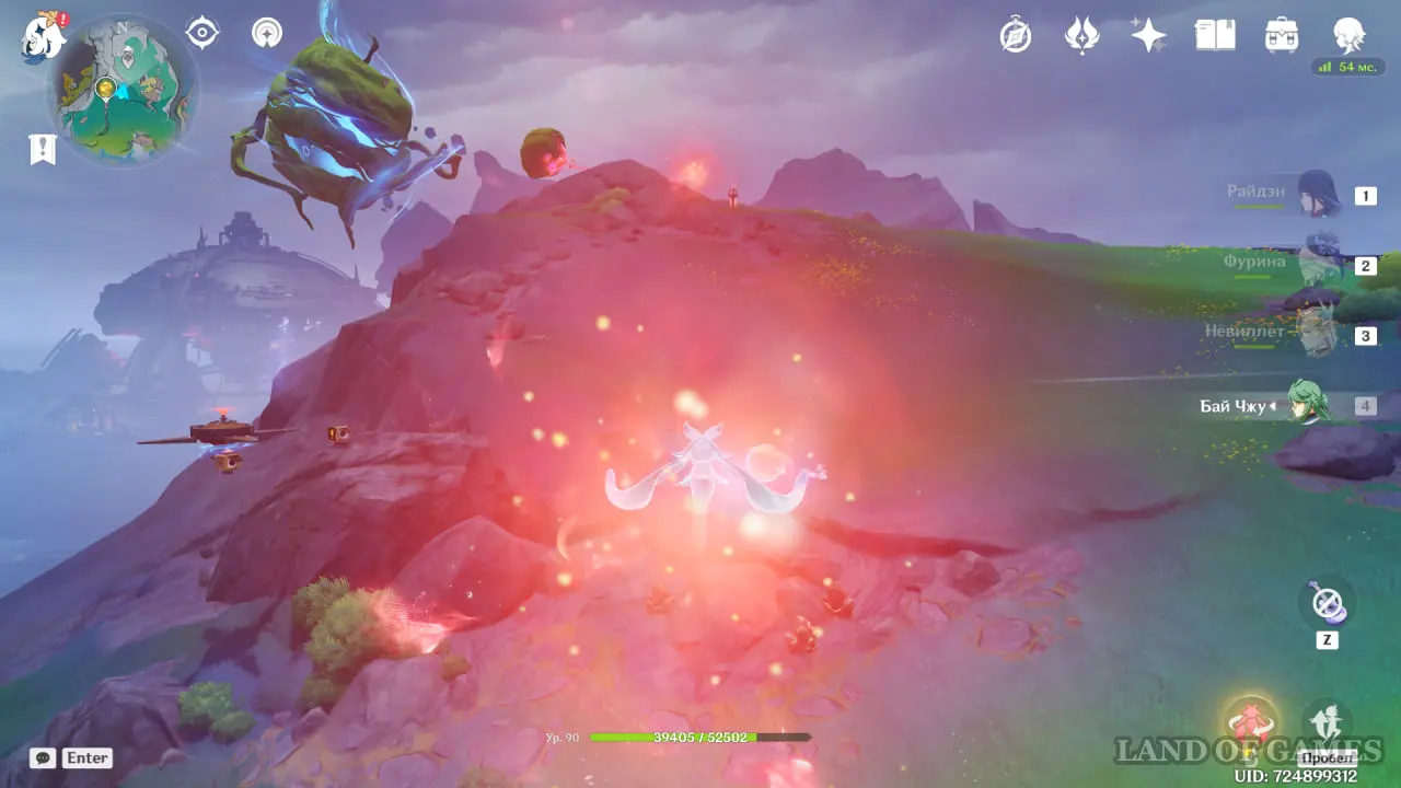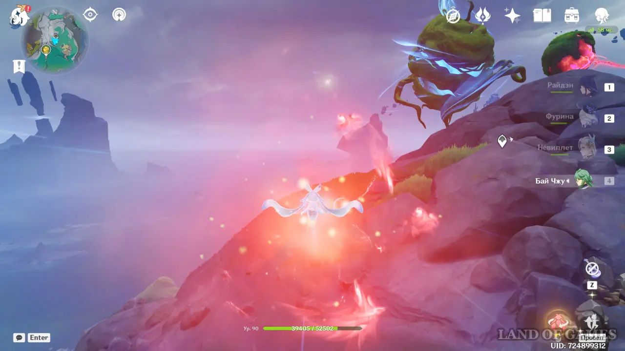После разрушения механизма следуйте за красным куухенки. Прикоснитесь к красному потоку и доберитесь до голубого тумана.