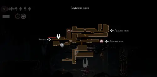 После можем вернуться в «Глубокие доки», а точнее на локацию «Костяк». Дело в том, что доступ к маске находится на соседней карте. Обратите внимание на скриншот ниже.