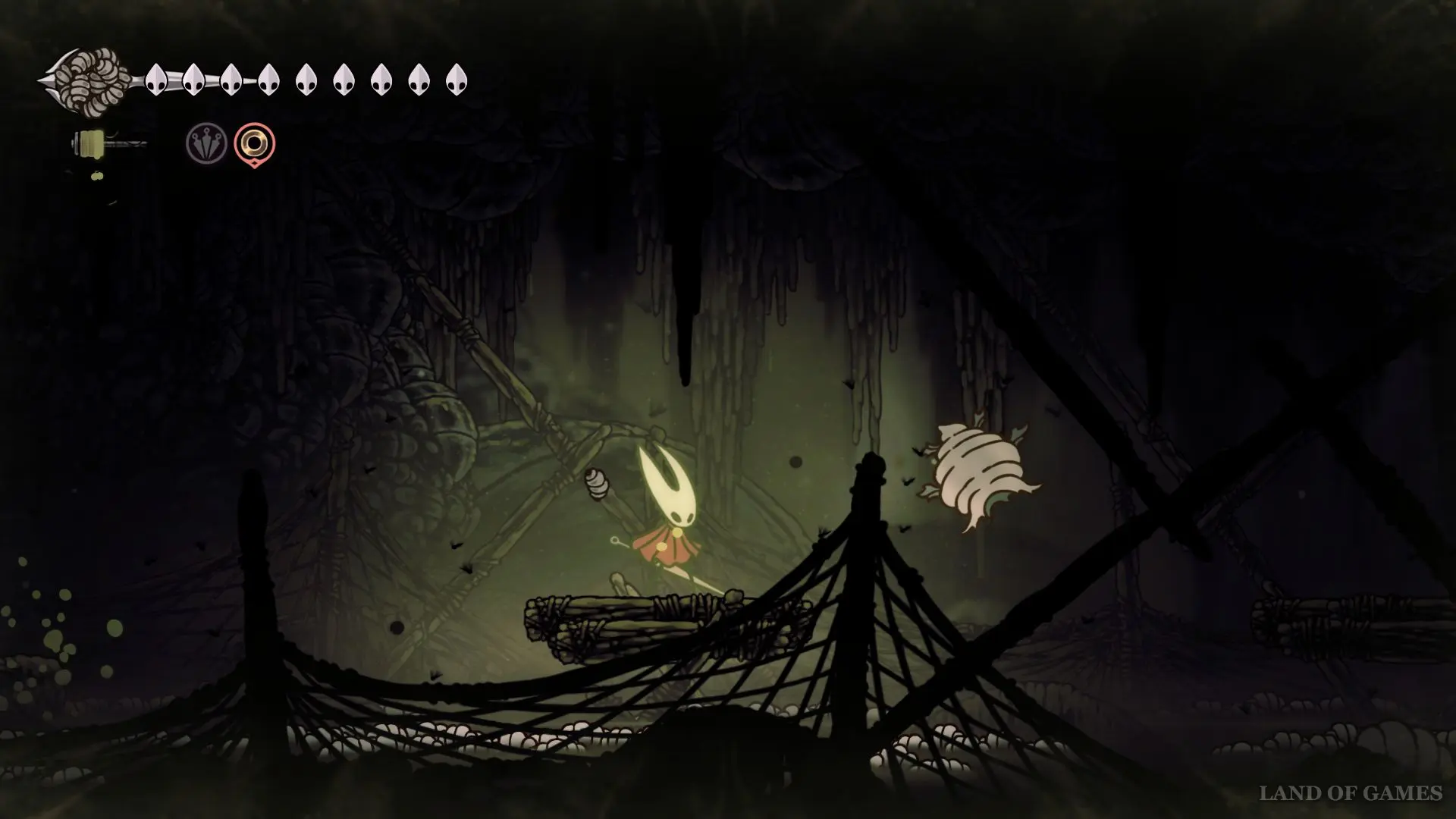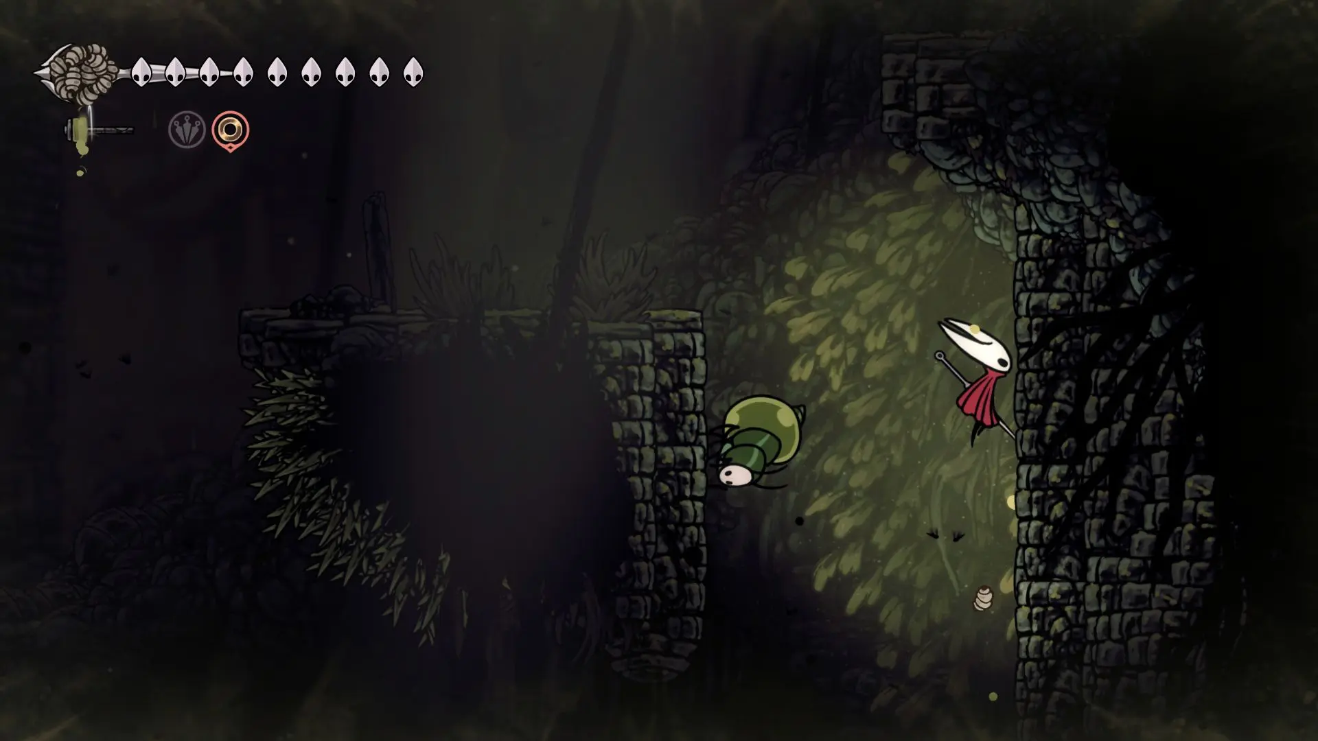 От Колокольного зверя бежим направо и перепрыгиваем на ближайший мостик. Будьте осторожны, здесь летают неприятные мотыльки, способные изменить траекторию нашего полета.
