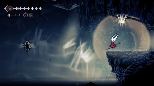 Осколок также находится в том же помещении, где находится Швея (ну почти). Нужно лишь найти способ долететь до верхней пещеры слева, что расположена прямо под потолком.