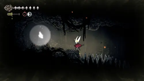 Ранее мы уже бывали на этой локации, но не могли забрать обломок из-за отсутствия нужной способности — «Цепкий захват». Получить навык можно на локации «Панцирный лес». Найти его несложно — после убийства босса «Сестра Лучина», проходим налево и по белым бутонам добираемся до алтаря, где обретем новую способность.