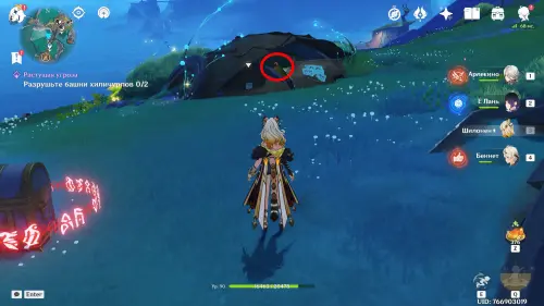 Переместитесь к телепорту к югу от Мастерской крумкаке «Дзынь-Клац», а затем поверните камеру направо и заберитесь на скалу. Далее начните двигаться на север, пока рядом с различным мусором вы не обнаружите заблокированный роскошный сундук. Для его открытия вам необходимо будет поймать крота-нюхача и заставить ботов улыбнуться.
