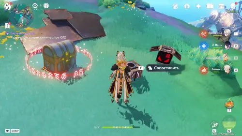 Итак, встаньте в растение куувяки, расположенное чуть южнее сундука, а потом наведите камеру на бота и нажмите «Т», чтобы активировать его. Далее подойдите к роботу, которого ранее из лунки выбросил крот-нюхач, и нажмите надпись «Сопоставить».