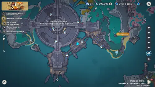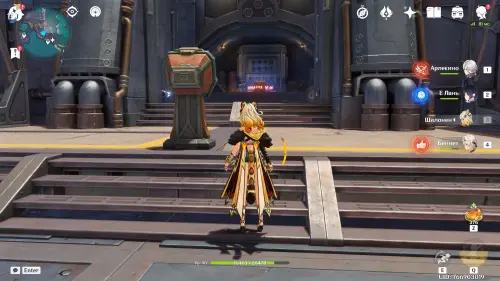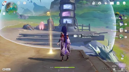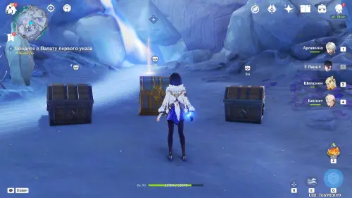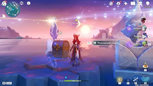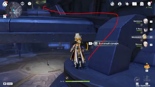 Переместитесь к самому юго-восточному телепорту указанной локации, а затем пройдите немного на северо-запад за ворота, войдя на территорию комплекса Фатуи. В помещении справа вы обнаружите заблокированный роскошный сундучок. Подойдите к терминалу и активируйте сухопутные крейсера, а затем уничтожьте их.