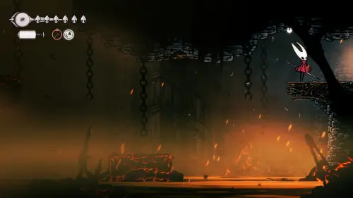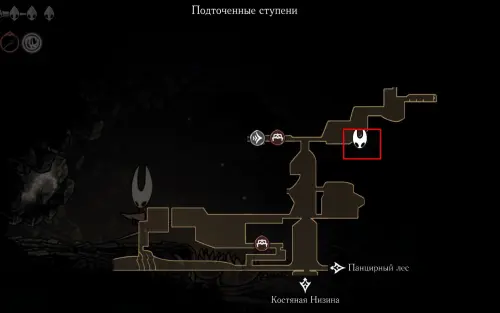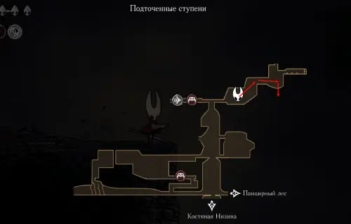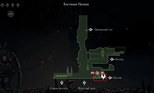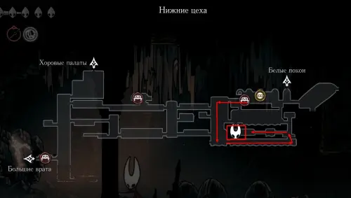 Сюда можно попасть через «Мрачную топь». Сама локация довольно маленькая, да и металл будет несложно отыскать, если есть цепкая нить, умеете держаться за стены (Цепкий захват) и совершать двойной прыжок (улучшенный плащ).