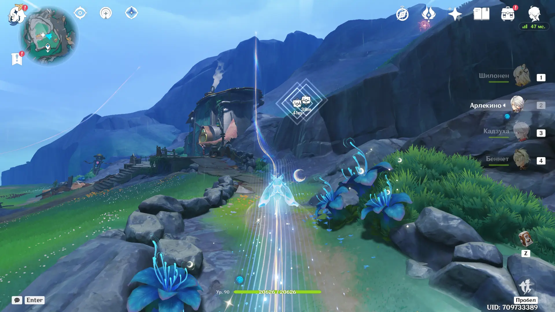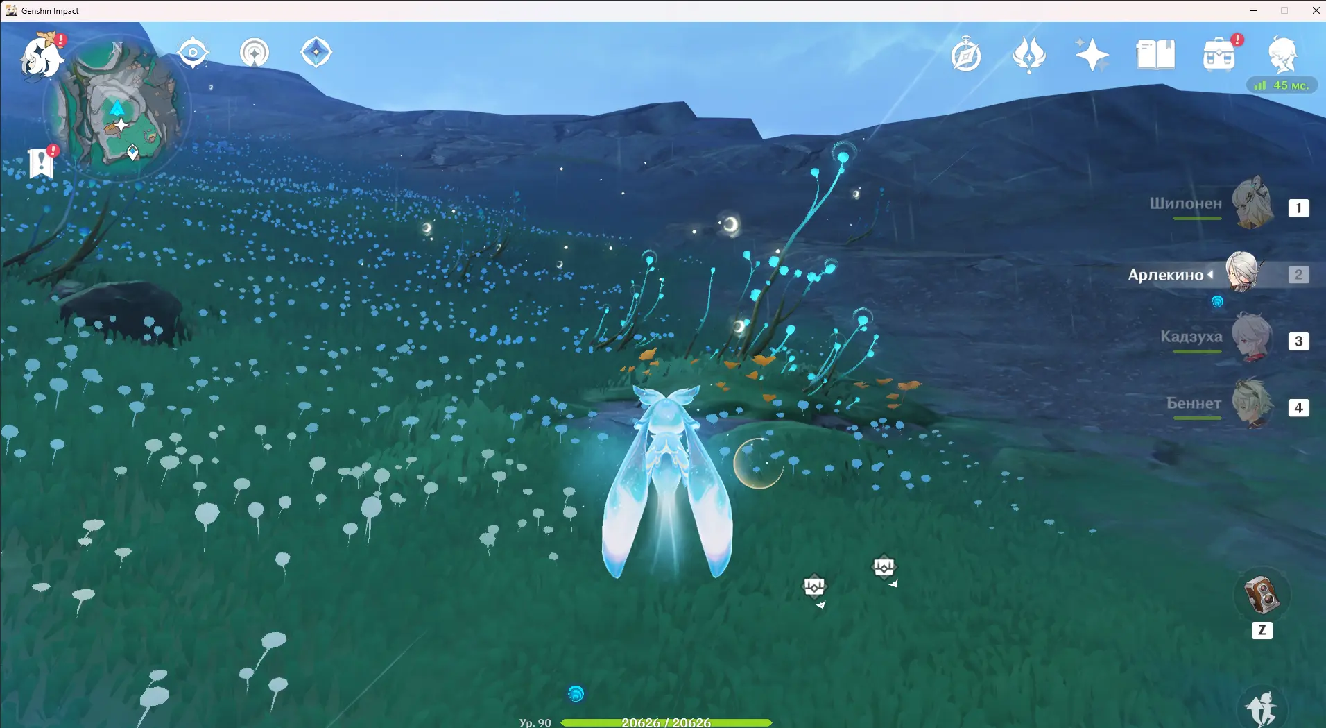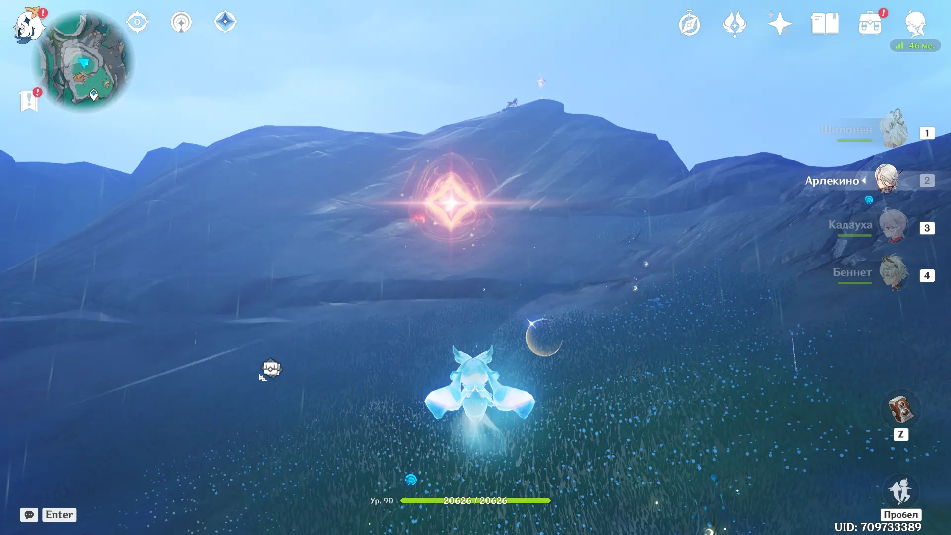 Пройдите на север, пока не обнаружите растение, наделяющее персонажа энергией куувяки, и нажмите T, чтобы перевоплотиться в синего духа. В этом облике пролетите на восток, к скоплению синих растений, а затем направляйтесь к красному знаку в небе. Знак переместит вас к вершине горы, на которой находится третий лунный дух. Снова используйте лунный путь, чтобы переместиться к третьему сундуку. На вершине горы не забудьте также забрать лунокул.