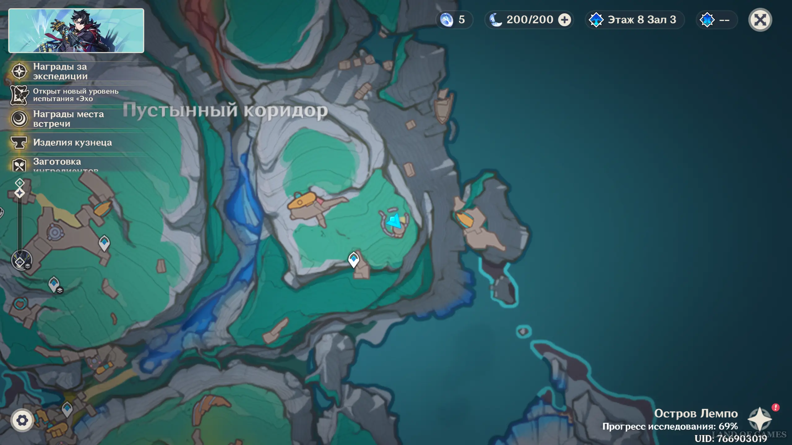 Переместитесь к точке телепортации в Пустынном коридоре на острове Лемпо (она выделена на скриншоте), затем бегите на север к небольшому дому. Три сундука расположены рядом с ним. Далее возьмитесь за поиски куухенки.