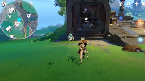 Эта загадка находится на плато, к западу от указанной области. Поднявшись наверх, вы обнаружите заблокированный роскошный сундук. Сначала вам нужно будет отыскать крота-нюхача, а потом пройти испытание «Улыбочку» с роботами и растениями куувяки. Мы в деталях рассказали об этом в отдельном руководстве.