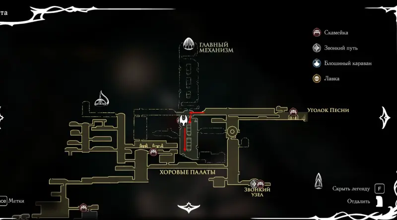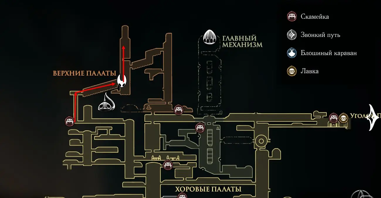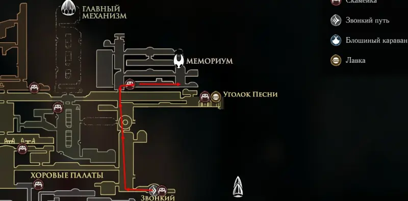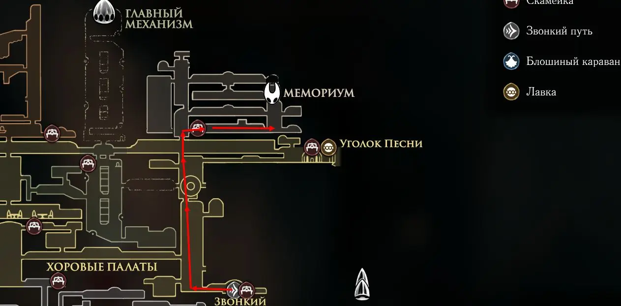 Следующую катушку можно купить у торговца в «Уголке песни». Но сначала необходимо выполнить два второстепенных квеста. Сначала по сюжету открываем локацию «Хоровые палаты». Там же найдем «Уголок песни», где бьем в колокол и разговариваем с Хранителем. После необходимо вернуться сюда позже. По возвращению появится доска с заданиями и несколько персонажей. На этой доске будет висеть квест «Странствующая торговка» — нужно спасти Юбилану.