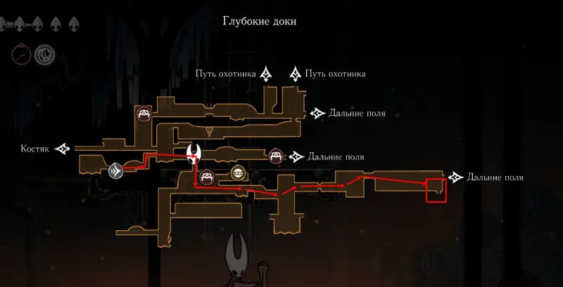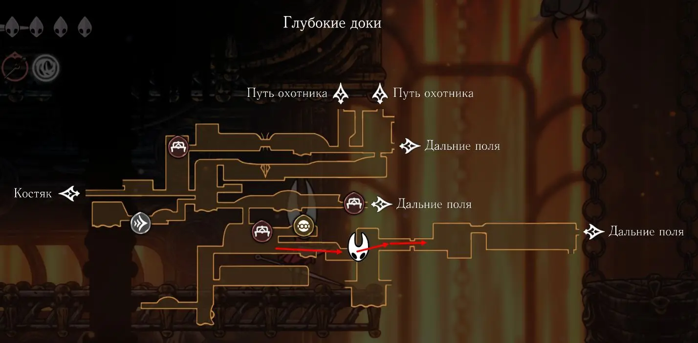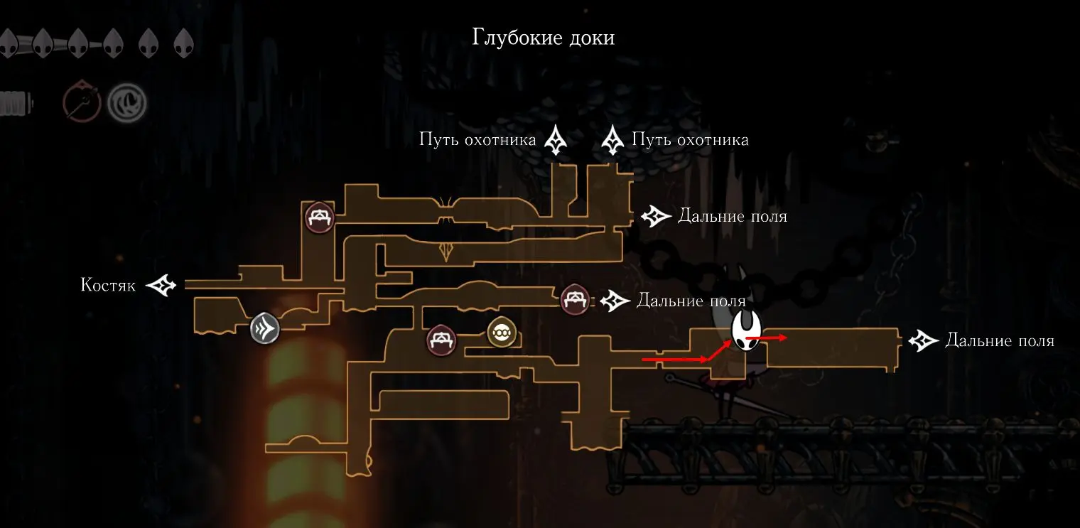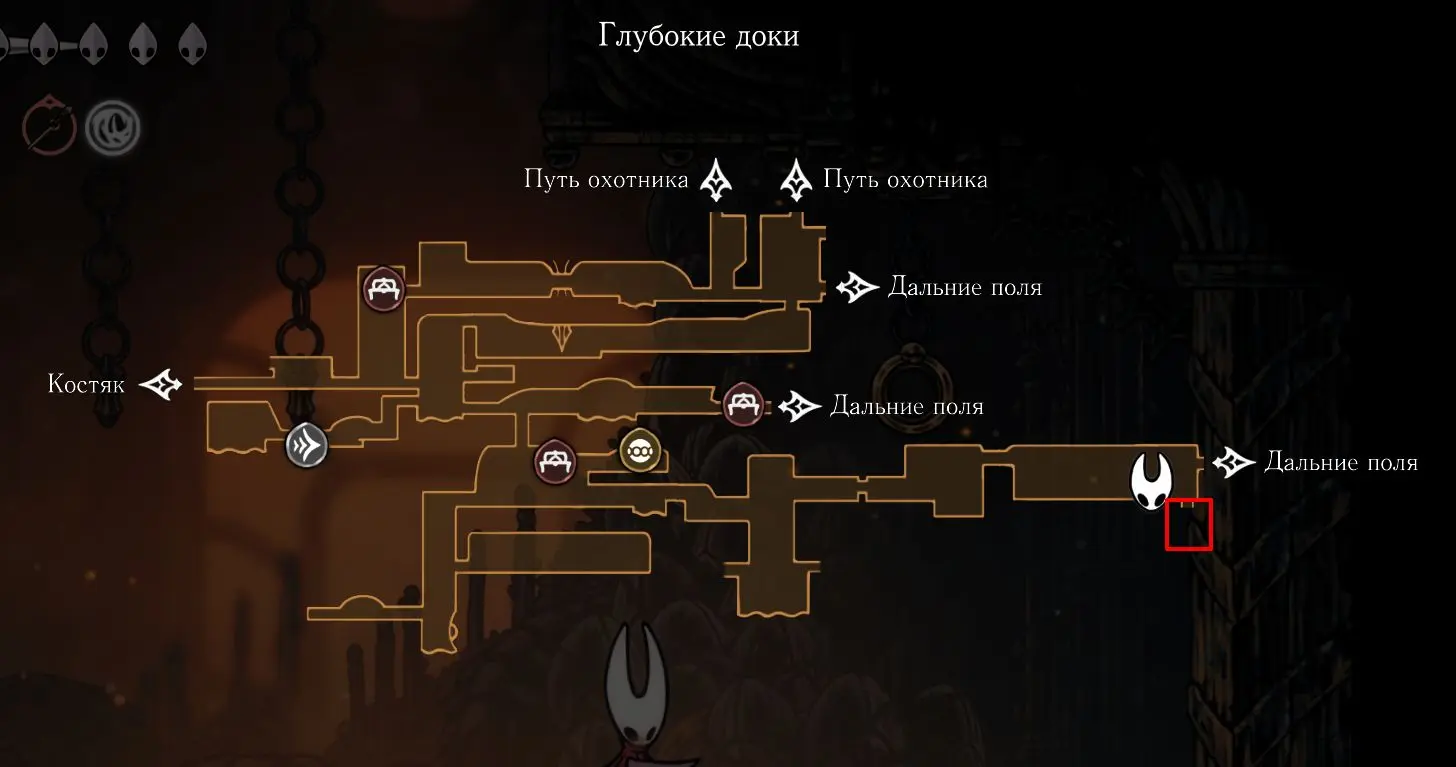 Сюда направляемся только когда получим навык двойного прыжка. Попасть на эту карту можно через «Мохоум». Отправляемся на «Костяную низину». От поселения идем налево и спрыгиваем в Мохоум. Нас интересует первый туннель справа. По нему добираемся до железных ворот, открыть которые можно только с помощью навыка «Иглончель».