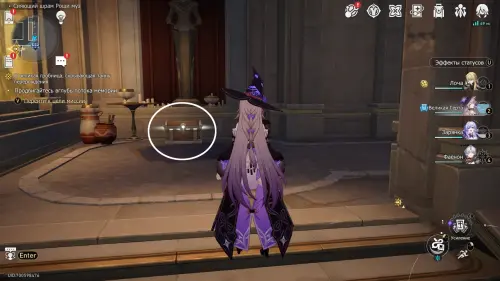 Перед тем, как покинуть облик духа, сломайте сосуд с ихором у подножия центральной статуи. Сделав это со стороны киота и коробок, вы сразу увидите сундучок, а если попадете в другую сторону куба, ихор создаст цветок — тогда придется спускаться вниз обычным персонажем, возвращать ихор силами времени назад и ломать сосуд с нужной стороны.