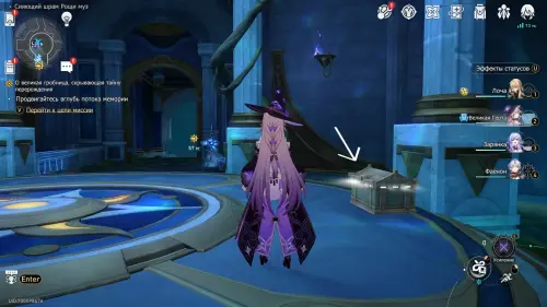 Пролетите к подножию статуи в центре зала, а потом зайдите в коридорчик под местом сбора 28-го ларца — тут находится предпоследняя сокровищница.