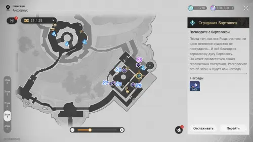 Для получения 14-й награды разверните камеру на юг и примените силы времени к метке побега Бартолоса, верните его и поговорите — так вам дадут 40 нефритов и 60 Беспорядочной амброзии.
