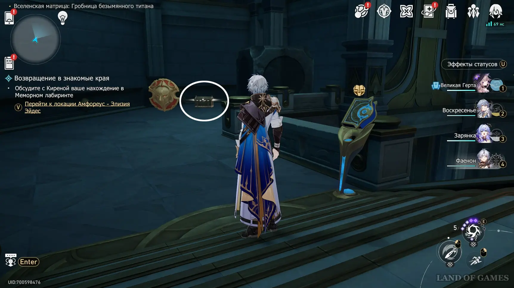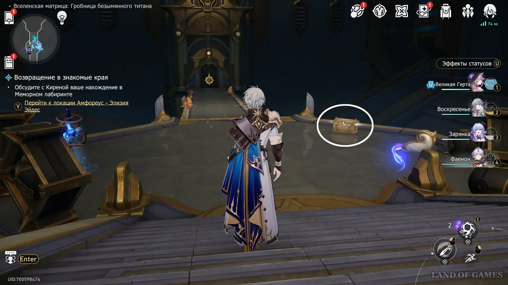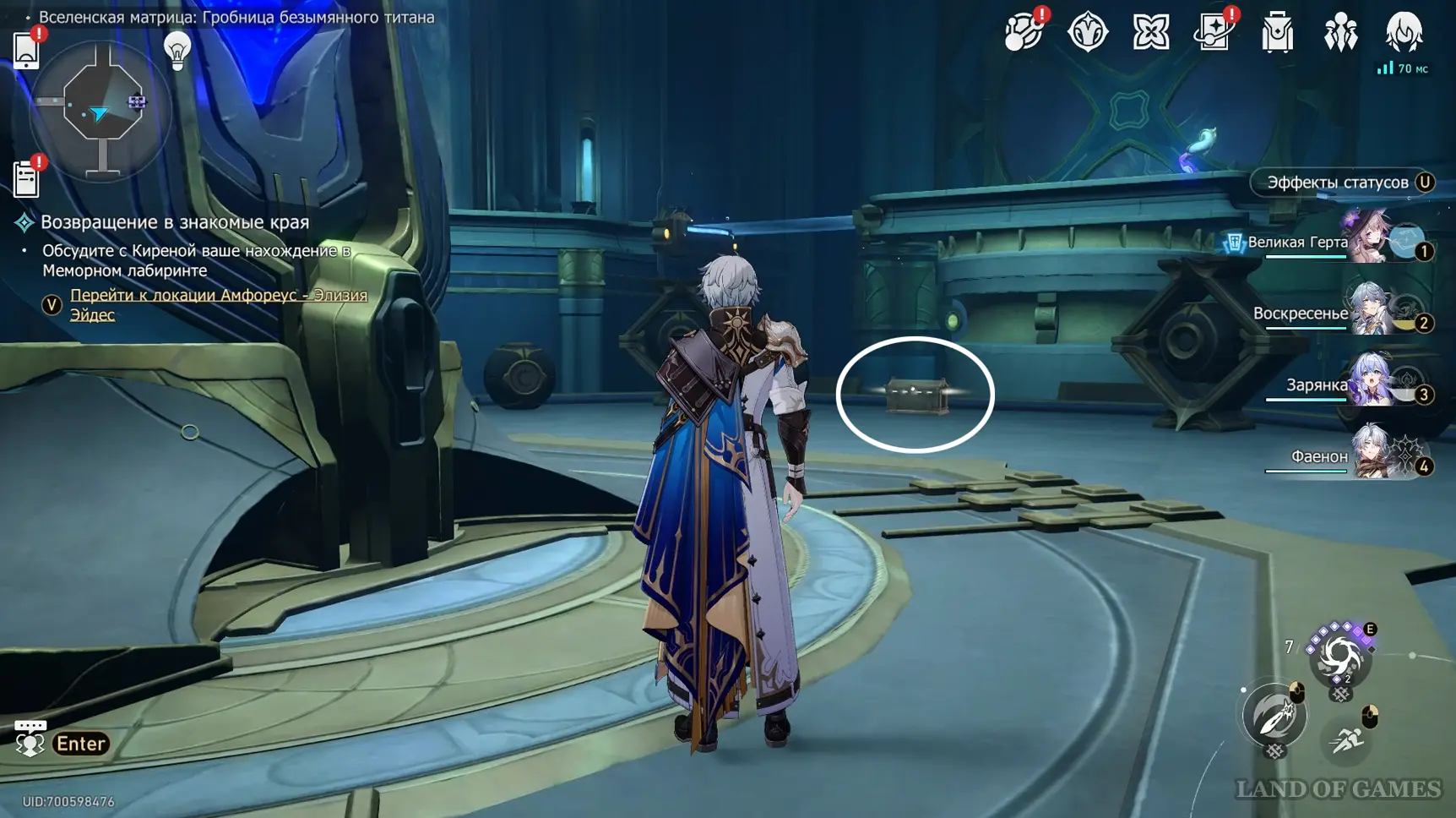 Начнем от Врат безмолвной гробницы на юге карты — сундучок стоит напротив телепорта, перед входом на 3D-карту.