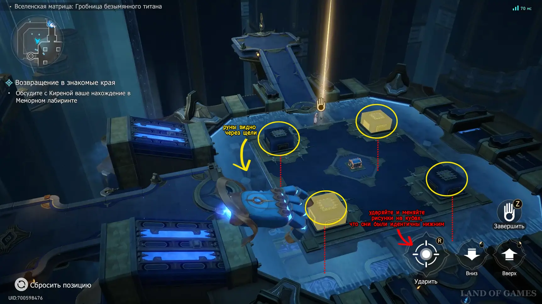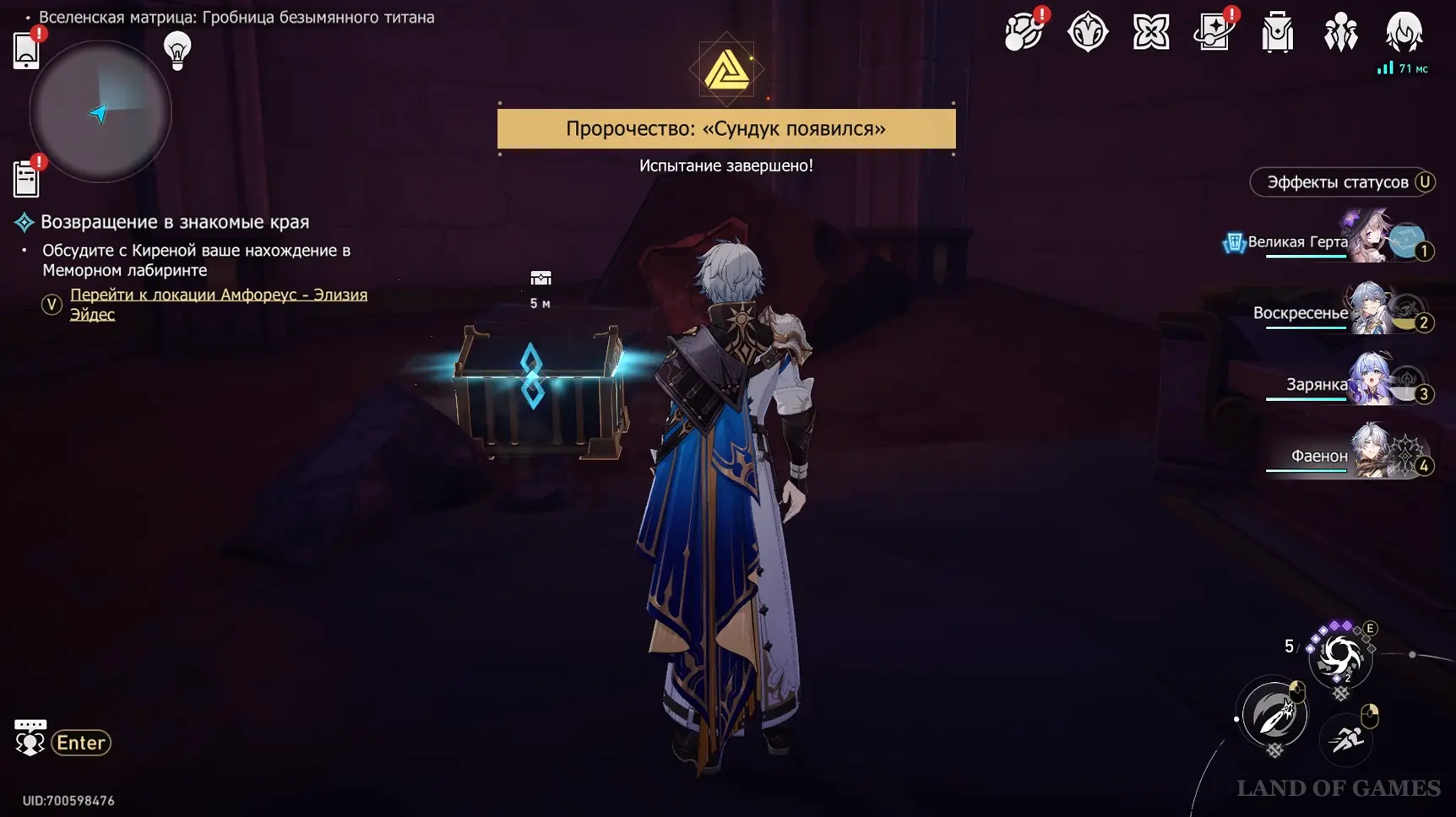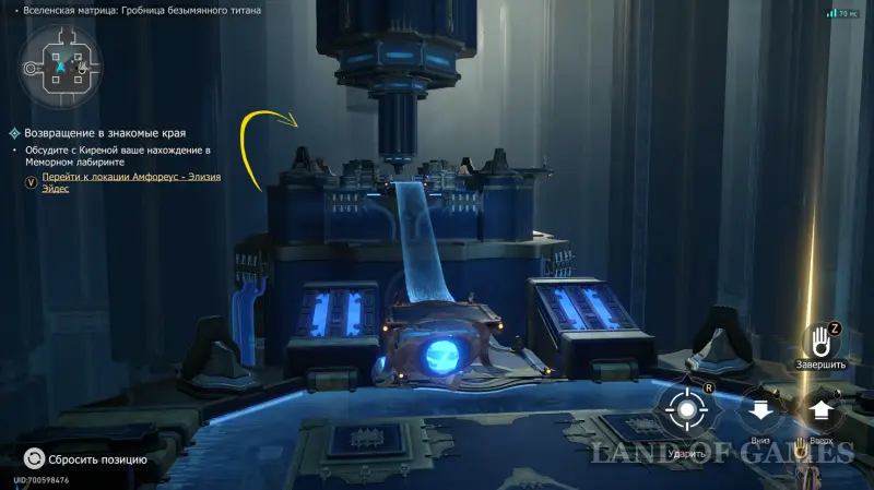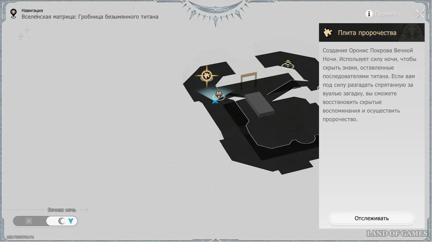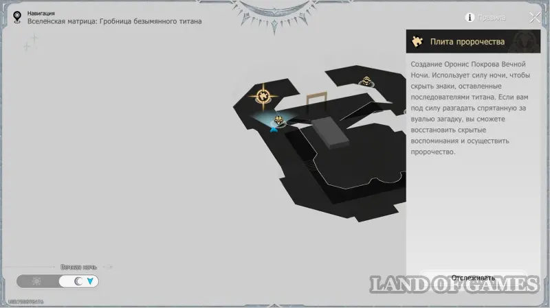 Оставаясь в разрушенном состоянии карты, пройдите к месту, где ранее получали 4-й сундучок — тут вас ждет настройка Плиты пророчества.