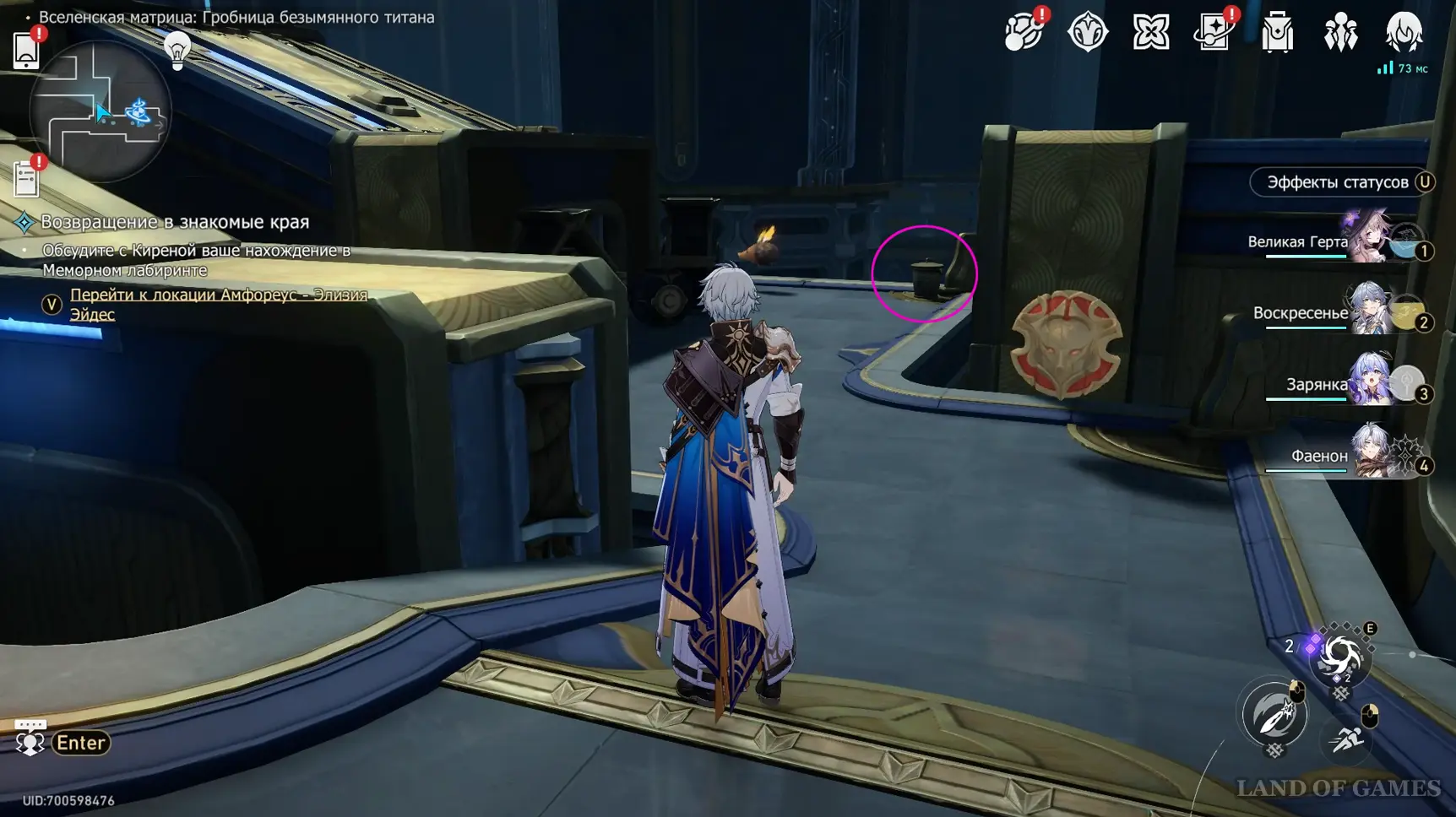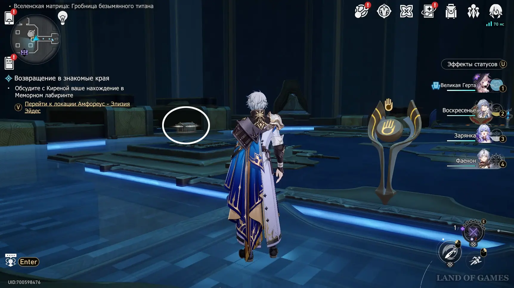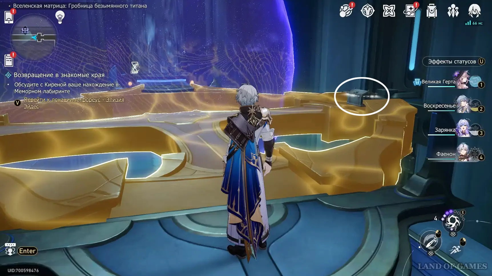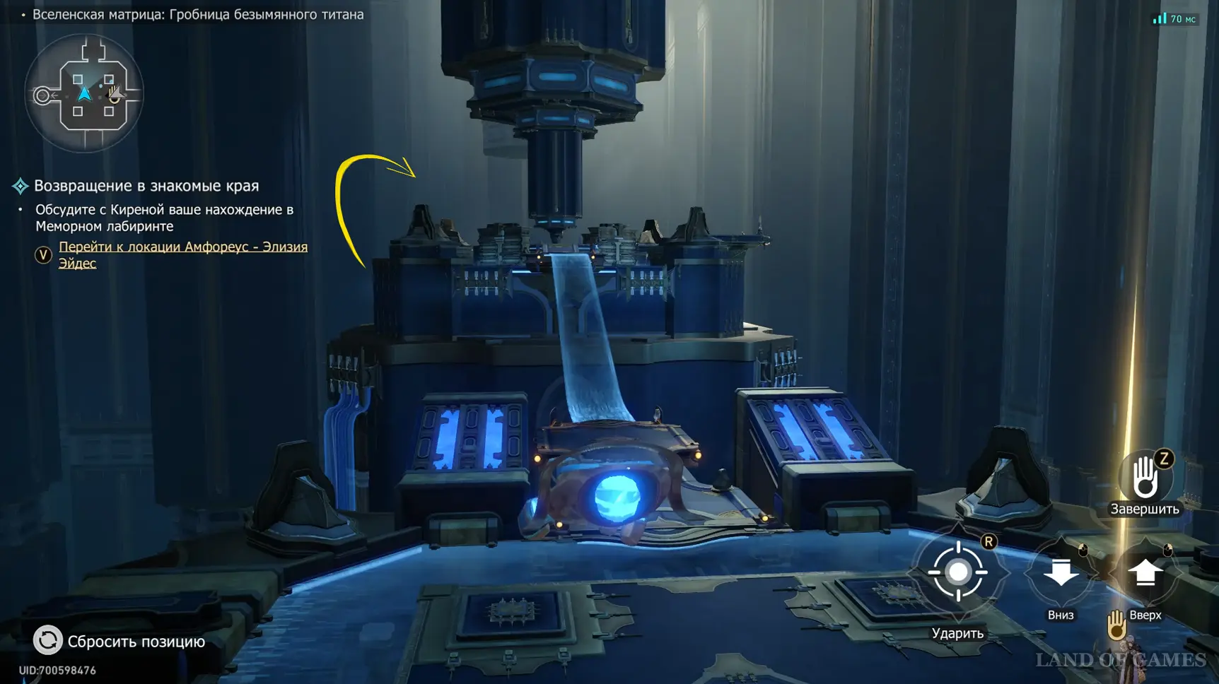 Оставаясь в разрушенном состоянии карты, пройдите к месту, где ранее получали 4-й сундучок — тут вас ждет настройка Плиты пророчества.