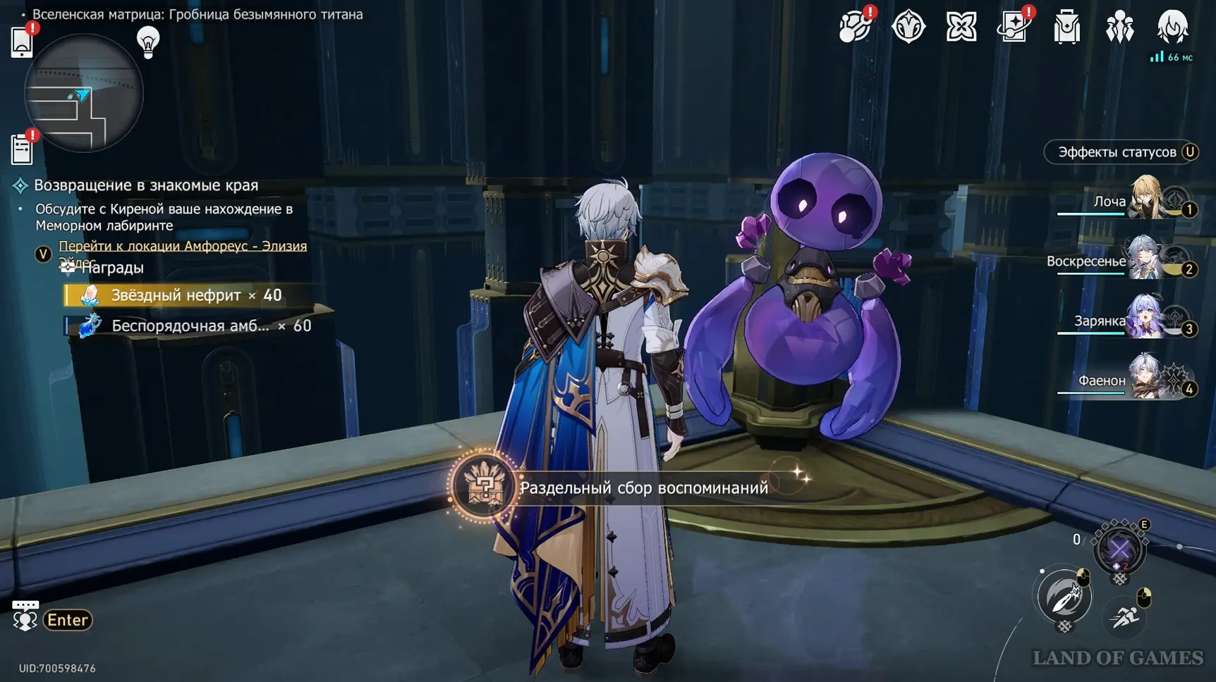 Выбираем на карте якорь «Сектор адвекции данных: Вход» на маленькой платформе в западной части карты, проходим до конца вправо и взаимодействуем с неприметной плетеной корзиной. Далее, вне зависимости от ответа, вы вступите в бой с воришкой и двумя мусорными баками (обязательно возьмите в отряд лекаря/щитовика, а также побольше героев одного типа урона, чтобы быстрее сбить стойкость мусорок). После победы и общения с Бартолосом вам выдадут 40 нефритов и 60 Беспорядочной амброзии + ачивку «Раздельный сбор воспоминаний».