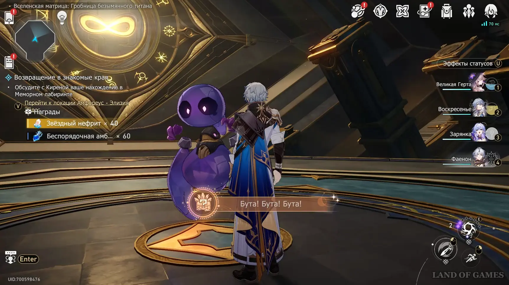 И наконец, после завершения сюжетки, вернитесь в центр зала перед матрицей и осмотрите парящий свиток — он активирует бой с тремя Воровскими духами, после победы над которыми дадут все те же 40 нефритов и 60 амброзии + ачивку «Бута! Бута! Бута!».
