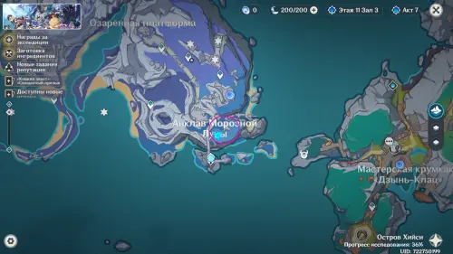 Следующей разберем загадку в ущелье на севере Озаренной платформы — спускайтесь вниз до места, обозначенного на карте выше.