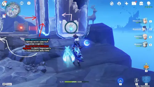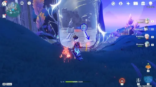 - Перед активацией подойдите к ближайшей куухенки (если нет, то можно к другому заряженному объекту, например траве) — это поможет активировать лунные способности (рядом с героем появится значок полумесяца);
