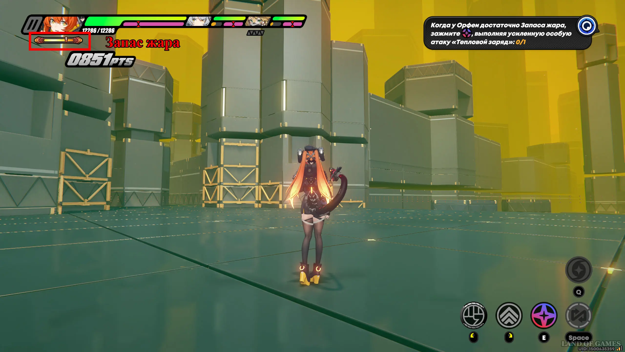 - Затем переключитесь на основного дамагера и в течение 12 секунд активно атакуйте врагов. Орфея при этом будет раз в 5 секунд выполнять обычную или усиленную (при наличии энергии) особую атаку, нанося неплохой урон и накапливая Запас жара.