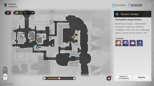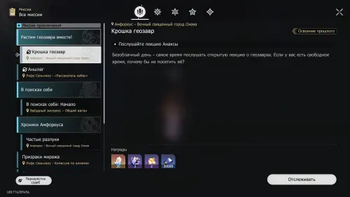 Примитесь за выполнение стартового задания и направляйтесь на Площадь Кефала, чтобы послушать лекцию Анаксы. Вскоре вылупится геозаврик – можете выбирать любые ответы с ним. Далее назовите его вместе с Гиациной. Потом изучите инструкцию по развитию геозавра, выбрав «Стажировку Первопроходца» и «Рассказ о себе». Далее начните следующую неделю.