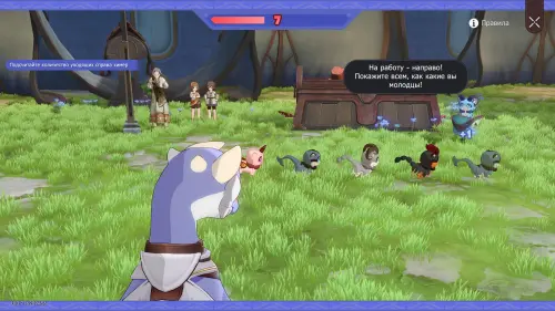 К этому моменту вы уже достигните всех целей, поэтому советуем вам повысить те характеристики, что отстают от самого прокаченного параметра. Мы выбрали «Обучение геозавра молитве» на повышение Харизмы и «Ласка геозавра» для увеличения энергии. Снова запомните, сколько химер пробежало на другую сторону. Правильный ответ – 17 химер.