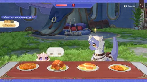 Далее снова выберите «Стажировку Первопроходца» и «Купание». Примитесь за новое испытание, в котором вам нужно будет просто выбирать блюда, на которые указывает главный герой.