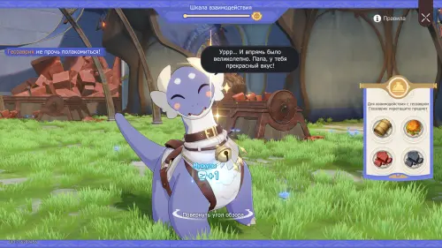 Если вы следовали нашим инструкциям, то должны будете выполнить все цели, поэтому можете теперь отдохнуть, выбрав «Геозаврик и вкусняшки» и «Ласка геозавра». Покормите своего детеныша любыми блюдами.