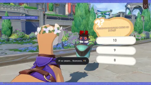К данному моменту вы, скорее всего, достигните нужных целей, поэтому рекомендуем вам прокачать те параметры, которые отстают от других. Мы советуем выбрать «Стажировку Первопроходца» на повышение Мудрости и «Лучший друг человека». Вам нужно будет пройти испытание по подсчету химер. Правильный ответ – 7 штук.
