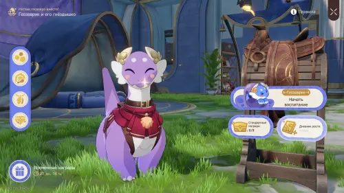 Затем выберите «Ласку геозавра» и оставшиеся два занятия. Погладьте своего малыша и гляньте новые события.