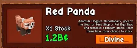 У красной панды есть только одно пассивное умение Adorable Haggler. Время от времени питомец отправляется в один из трех магазинов – Gear Shop (магазин снаряжения), Seed Shop (магазин семян) или Pet Shop (магазин питомцев) – и обновляет случайный слот в ассортименте.