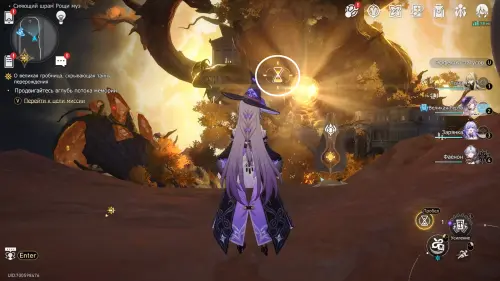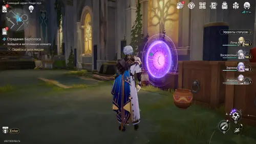 Подойдите к Швее, стоящей на 1-м этаже Сердечной раны (центр карты) — около нее появится золотая монетка, которая намекает на спрятавшегося поблизости Бартолоса. Разверните камеру на юг (в направлении отверстия) и примените силы времени к метке песочных часов, верните его и поговорите — так вам дадут 40 нефритов и 60 Беспорядочной амброзии.