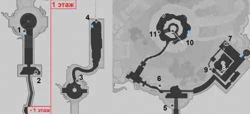 Начните свой путь с нижнего этажа, с якоря «Запечатанная обитель». Вы тут же встретите первую жужелицу, сидящую на прозрачных перилах.