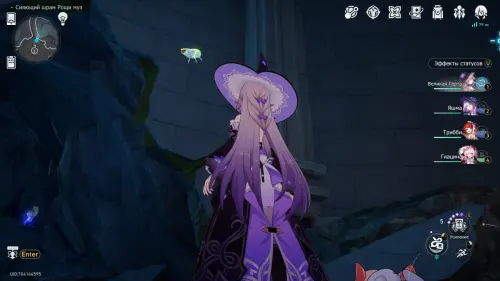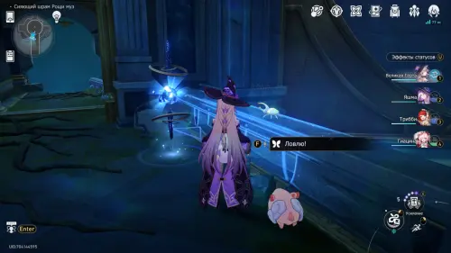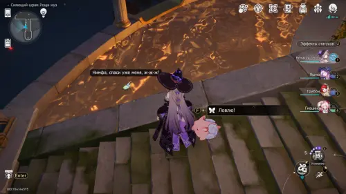Приняв форму воровского духа, спуститесь на нижний уровень локации от якоря «Руины слез» и пролетите через проход с коробками. У потолка обнаружите растерянную нимфу.
