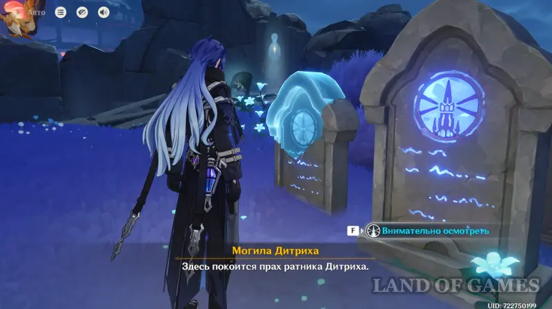 Справа от стула можно провзаимодействовать с могильной плитой Дитриха — громкого призрака, с которым мы запевали мелодию. Осмотрев ее повнимательнее, вы узнаете посмертные пожелания ратнику. Никаких наград за завершение активности вы не получите.