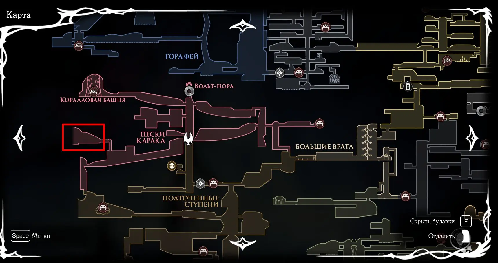 Пограничный наблюдатель скрыт в самой западной части «Песков Карака». До него можно добраться только под конец игры, когда получите навык супер-прыжка, который можно найти в «Бездне». После можете отправляться на эту точку.