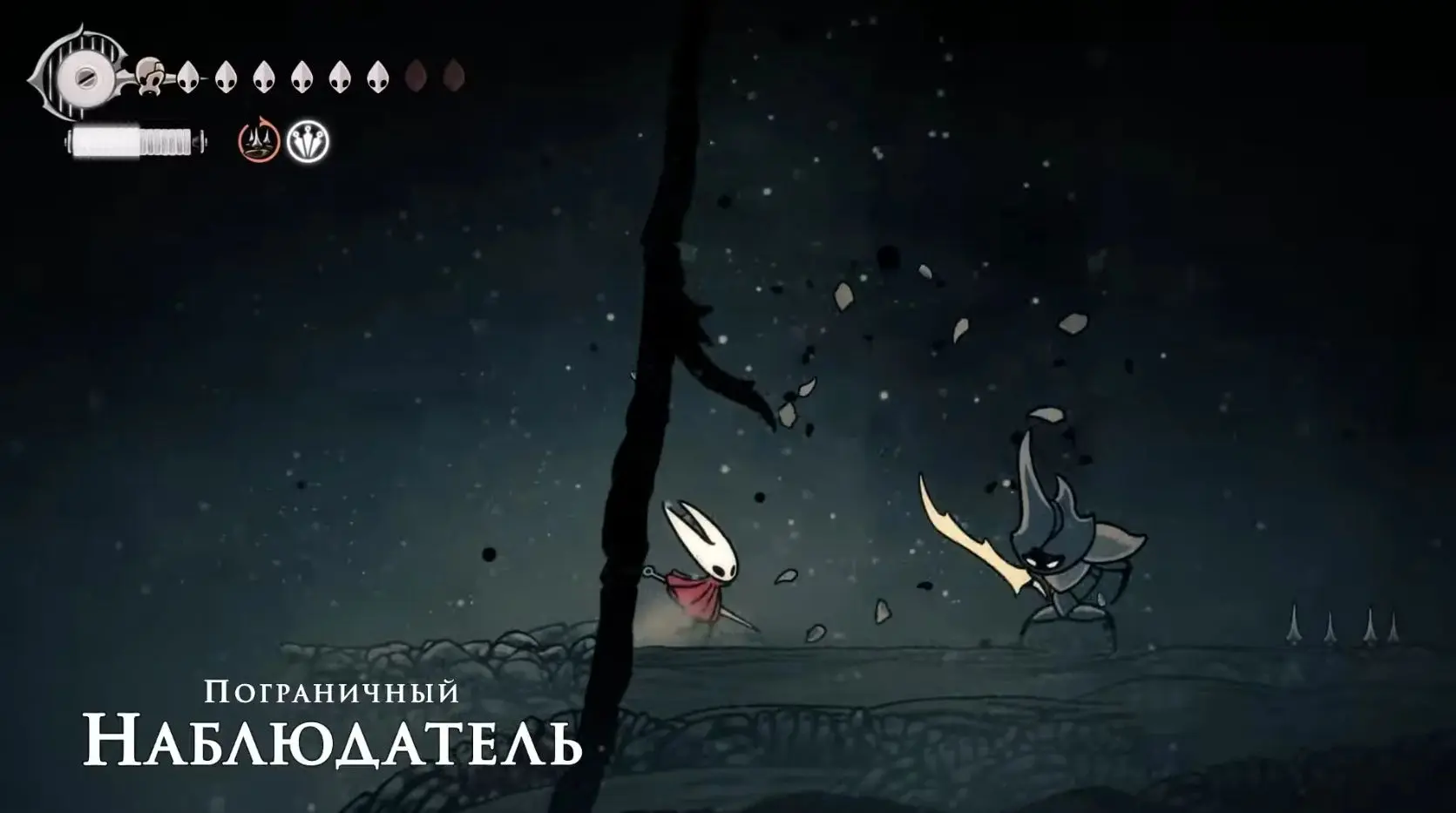 Пограничный наблюдатель — босс обманчивой простоты. У него нет сложных фаз и ярких заклинаний, но его атаки смертоносны. В бою поможет знак Зверя или Ведьмы. Из умений берем «Шелковое копье» для нанесения урона с дальней дистанции. А из инструментов выбираем те, что наносят пассивный урон без вашего участия, например, «Заводная муха», или же «Кремневая пластина», чтобы увеличить урон основного оружия Хорнет.