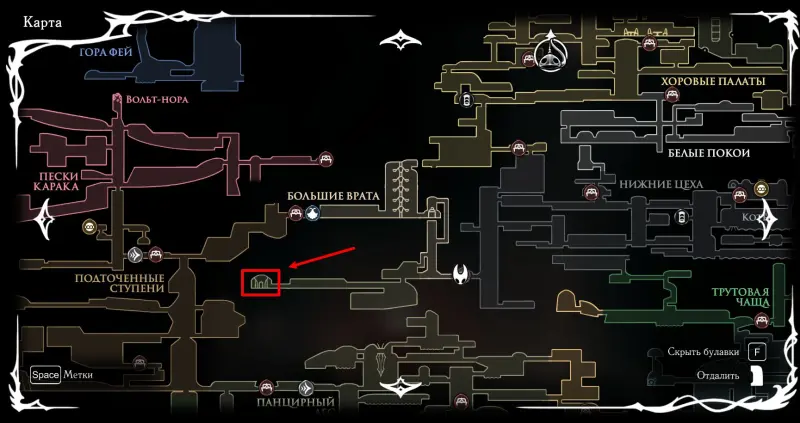 В награду получим Шелковое сердце, которое восстанавливает одну катушку шелка. Также мы откроем быстрое передвижение по игровому миру, но для этого потребуется разблокировать станции «Звонкий путь» на других локациях.