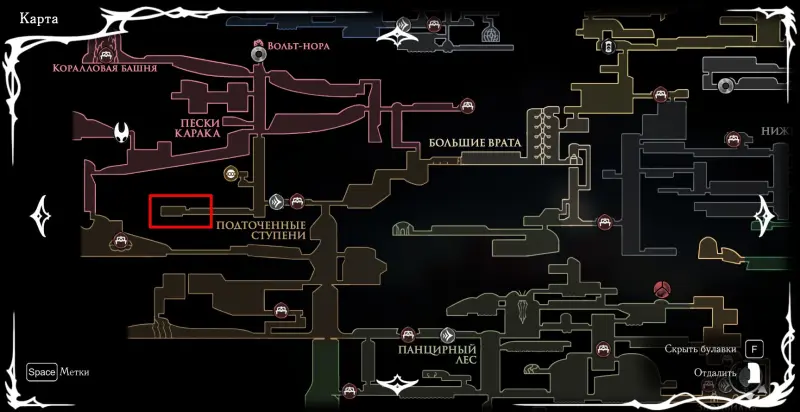 Одержав победу в Капелле Зверя, вы получите Знак Зверя. Это не просто амулет, а инструмент, кардинально меняющий стиль игры Хорнет. Он заменяет ее стандартную иглу на взмахи когтями и вводит режим берсеркера при использовании умения «Связывание», когда ваши атаки наносят больше урона и восстанавливают здоровье.