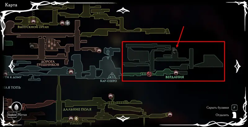 Далее предстоит встретиться с ним еще несколько раз. Но, чтобы попасть на локацию «Вердания», вам потребуется попасть в третий акт игры и найти умение «Элегия глубин» на локации «Бездна». Только с помощью этой способности можно открыть вход в скрытое королевство.